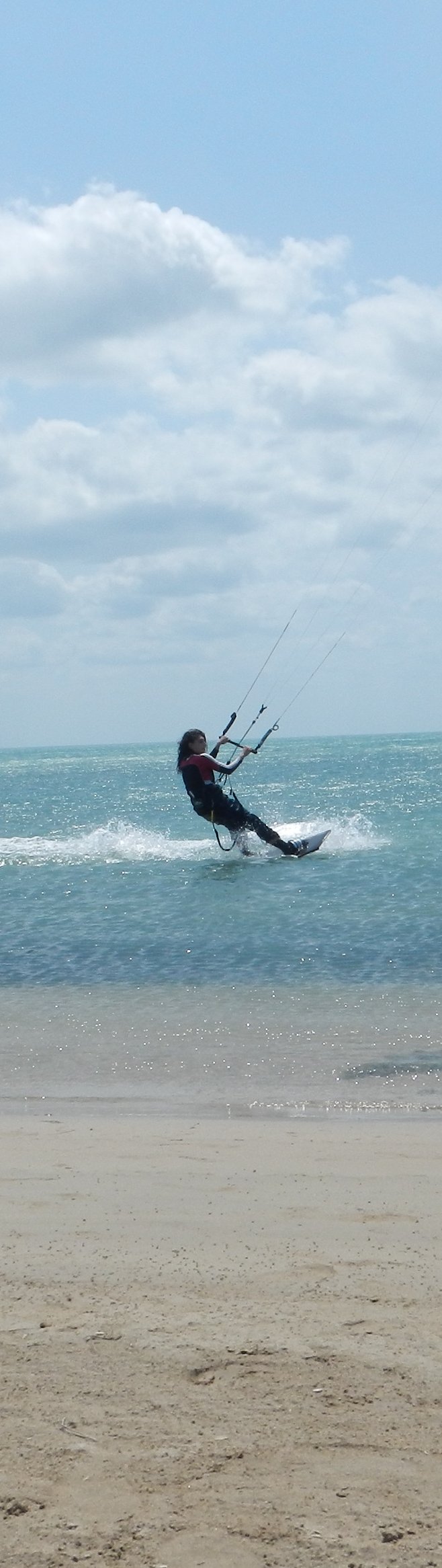 français. Le spot est peu peuplé, 5 à 6 kites max. Comptez entre 1m et 1.5m de vagues et du vent entre 20 et 30 nœuds. J'ai passé deux semaines en février mars et tous les jours sont ventés l'après midi. Le vent est régulier, il est side-on et entre les deux zones de vagues le spot est plutôt freeride et bump&jump. Le shore-breack est bien gros et même surfable dans les premiers 100m du bord de plage. Pour loger, le plus simple est d'aller à la « casa frances » comme dit le transporteur qui y amène les riders. C'est une maison en surplomb du spot, Phil accueille ses locataires et vous donnera les conseils que vous cherchez. Il est en effet très présent sur le net au-travers des forum.