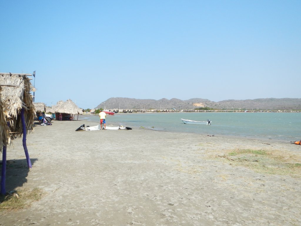 Tout le monde connaît beauduc. C'est endroit sauvage qui semble préservé de l'homme, on y passe une heure à serpenter sur une piste à 20km/h pour y acceder. Et bien pour cabo de la vela c'est un peu ça aussi. On passe toute la journée pour s'approcher de la frontière vénézuelienne sur des routes plus ou moins crevassées pour enfin finir dans la benne d'un pick up indien qui nous amène à ce « beauduc » géant. On roule ainsi une heure, mais sur une piste de sable bien propre et en ligne droite à 80km/h. C'est le bout du monde, le territoire des indiens « «wayuu ». Ces indigènes d'environ 1m50 à 1m70 peuple ces terres avec des fermes et des habitations légères en bord de mer pour accueillir les touristes de passage venant contempler les lieux. Le spot est off shore, le vent est y moins irrégulier qu'à puerto velero, mais irrégulier quand même. Il est très très fort, mieux vaut naviguer en fin de matinée et le soir quand il est sous les 30 nœuds. Car en milieu de journée, il dépote vraiment. Ça tombe bien, cette pause imposée est l'heure de la sieste. Le spot est vide, 3 kites max sur l'eau le soir pour un spot gigantesque, on a pied très loin si on reste au bout du spot où se situe l'école de kite. Et oui, il y a une école de kite et 2 enfants indiens kitent le soir, ils se débrouillent très bien. Le logement est surprennant, hamac ou chambre avec des cloisons en bois style « cannisse », on est auditivement très proche de la chambre d'à coté et même visuellement entre les fentes des pseudo « cannisses ». Mais ce n'est pas grave, on était les seuls clients avec 2 allemands qui préféraient passer la nuit en hamac dans le dortoir. Les dortoirs ont une cloison ouverte sur la mer, c'est sympa. Comptez 4€ la nuit en hamac, 20€ pour une chambre de 2 personnes avec wc et sdb. Attention, l'eau n'est pas courante, elle est dans des bidons, et l'électricité est présente le soir de 19h à 22h. Donc, impératif d'être dans sont lit avant 22h si vous n'avez pas de lampes à piles.