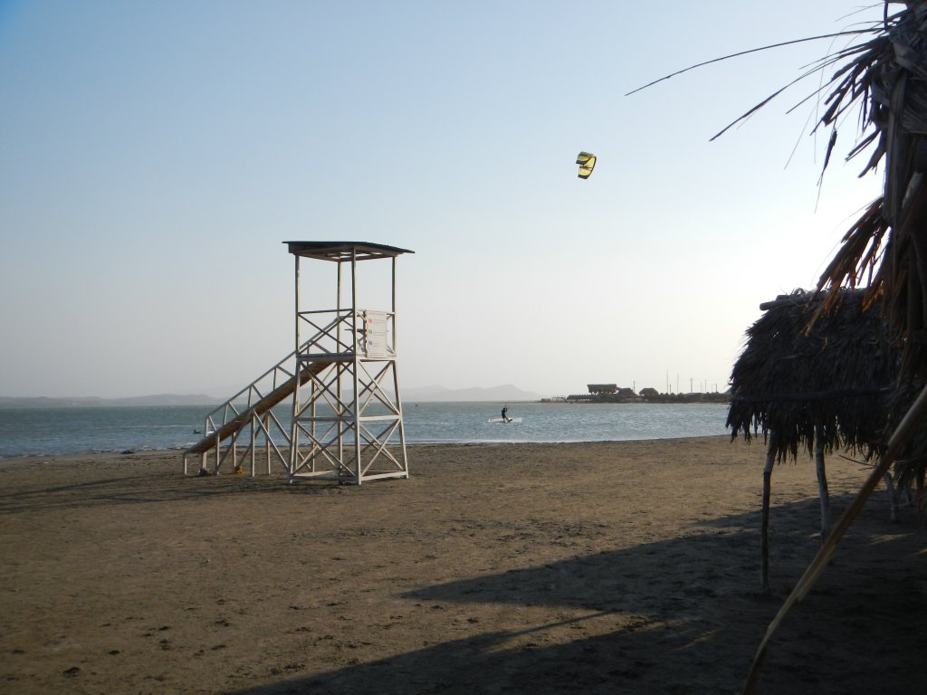 À 10km au nord-est de santa veronica, cette baie est orienté vers l'ouest. Le vent y est donc offshore et le plan d'eau très très flat, et là il y a des planches à voile. En fait il y a surtout des kites. Et contrairement à Santa Veronica, ce sont des colombiens qui naviguent. Le vent est très irrégulier mais certaines zones sont peu profondes et représentent un lieu d'apprentissage correct pour le kite.